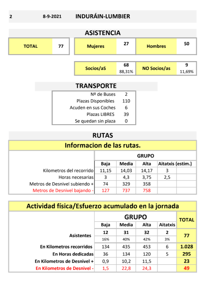 ESTADISTICA DE LA EXCURSIÓN