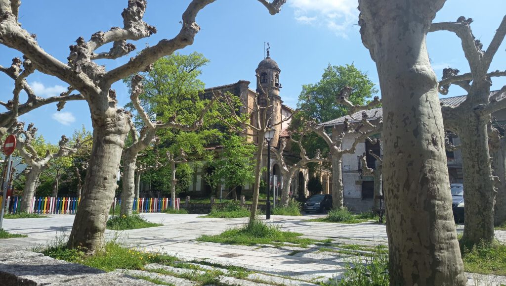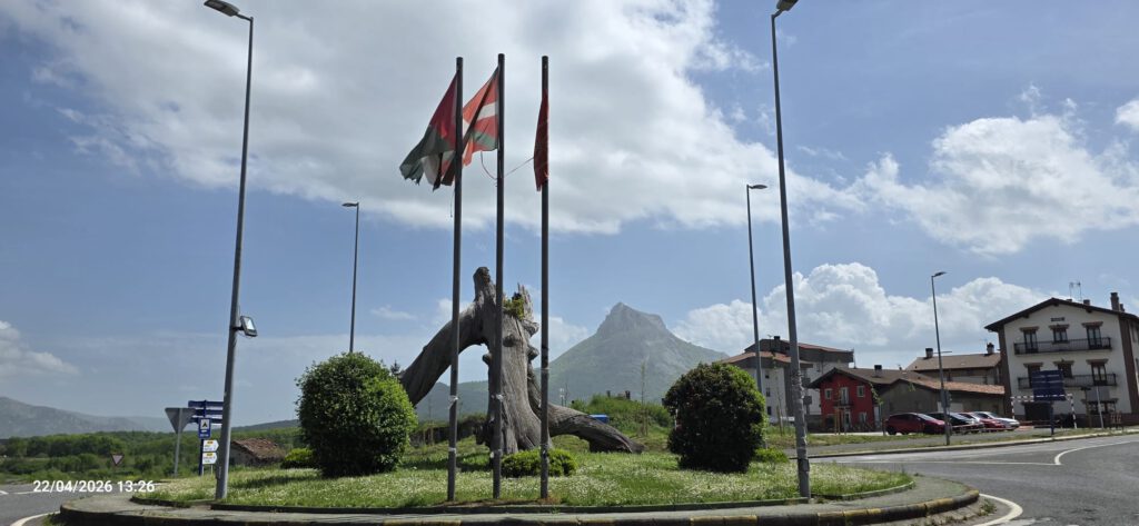 Pasado el puente sobre el río Arakil caminamos por la derecha llegando a la calle Ugalde, seguimos marcas GR y veremos la señal de parking donde estarán los autobuses.