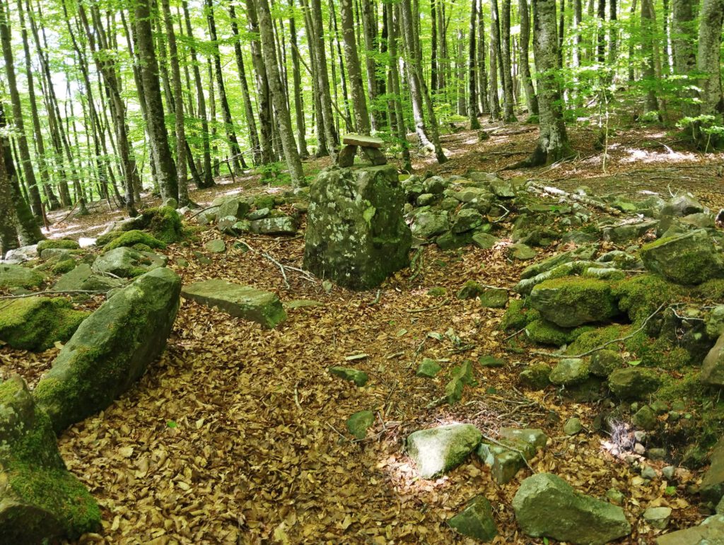 Empezamos caminando por amplia pista dirección norte, pasamos una langa metálica dejando a la derecha unas cimas rocosas. Pronto empezaremos la subida que es continua alternando senda por calzada romana. Llegamos al dolmen Bernoa (822 m.), un poco más adelante la cima Argonitz (936 m) donde empieza un continuo subir y bajar por la GR 323, haremos varias cimas sin mucha dificultad por la ruta de los dólmenes, paralela a la muga con Guipúzcoa, hasta alcanzar la cima de Irumugeta (959 m).
