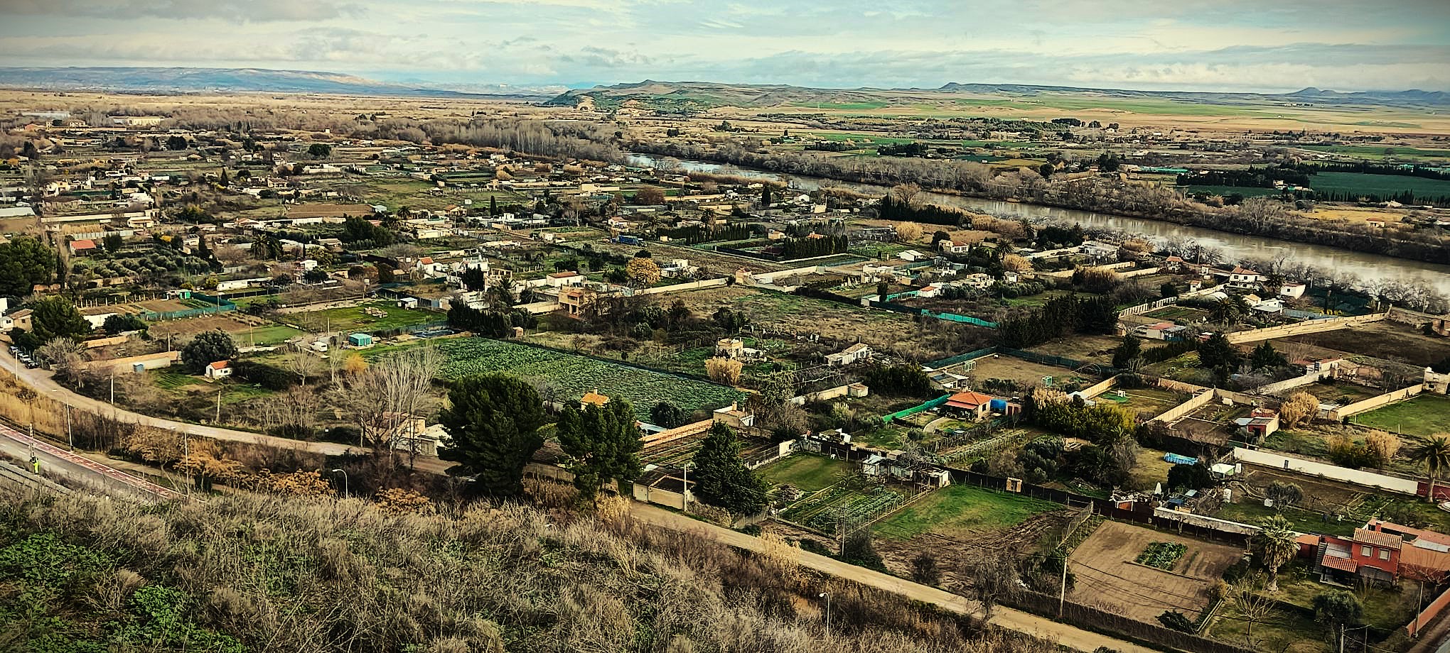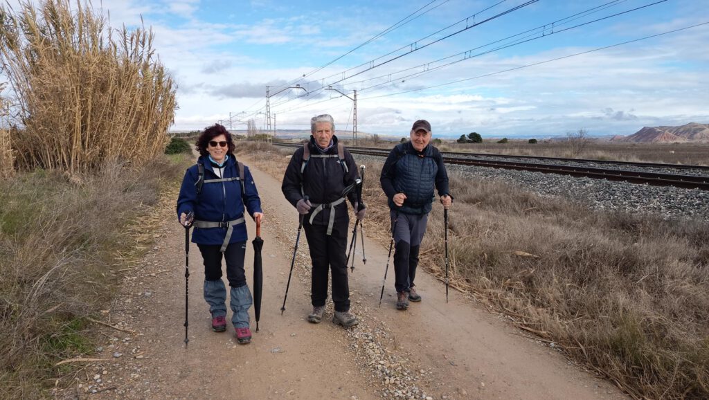 Iniciamos la ruta en el Km 88,5 de la autovía del Ebro (A-68). Tomamos una carretera que nos conduce hasta un parque de placas solares; a continuación cruzamos la zona de cultivos denominada “la Plana de Marzo” por un camino rural, y tras un leve descenso, llegamos a la Vega del Ebro. Ahora nuestro trazado discurre paralelo a la vía del tren hasta llegar a un puente, que cruzaremos. Veremos el curso del rio Ebro,