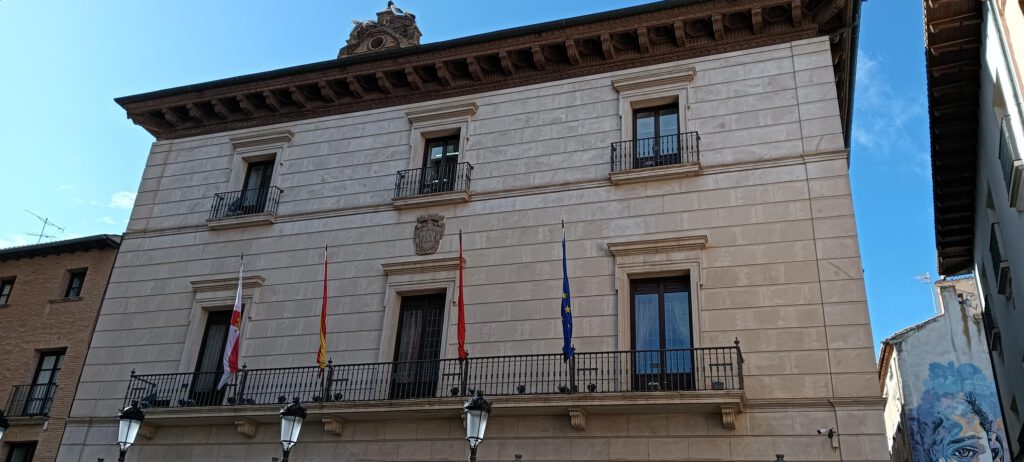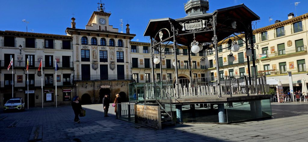 Bajaremos por camino peatonal hasta el paseo Del Castillo, y más adelante continuar por las calles Pelaires y Caldereros, hasta la Plaza Ha-Levi Yehuda, y salir al edificio del Ayuntamiento y a la Catedral. Ya solo nos falta seguir por las calles Roso y Concarera, hasta llegar a la plaza de Los Fueros. Fin del recorrido.