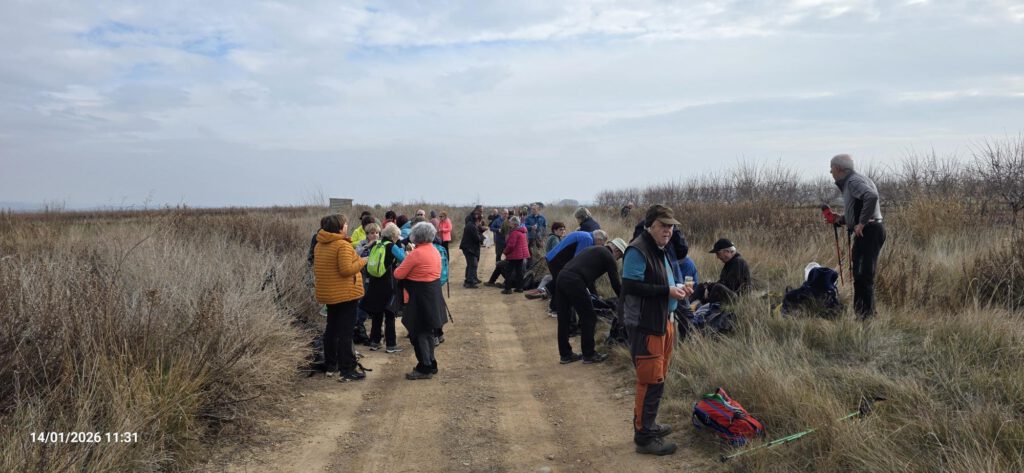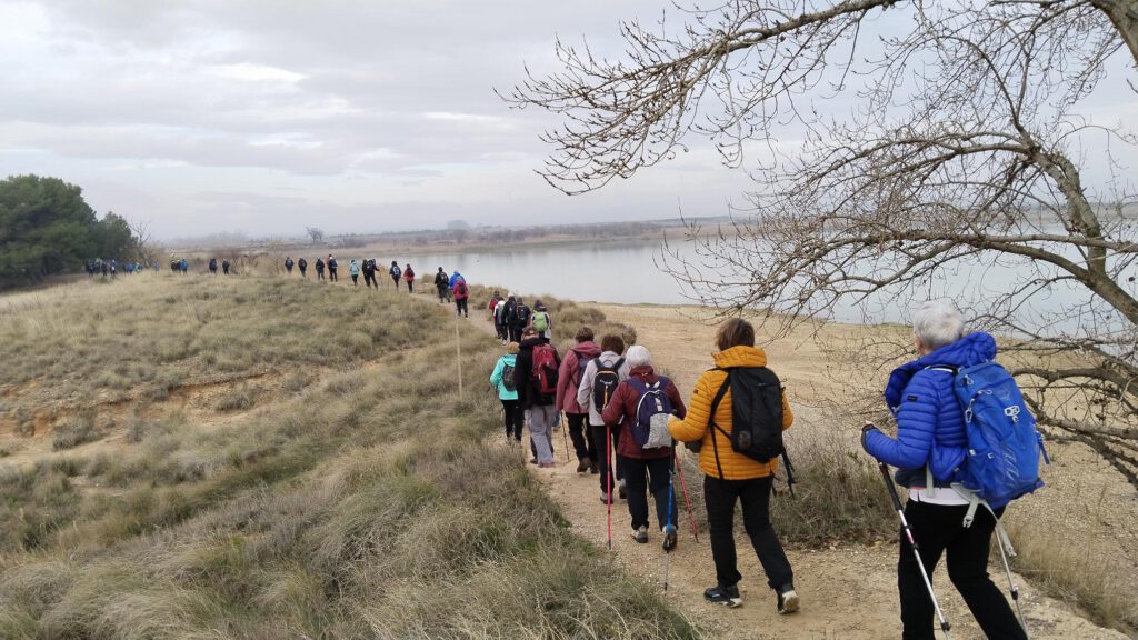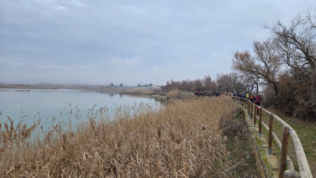 Hoy comenzamos la ruta junto con la MEDIA y la BAJA en el km 6,7 de la NA-6830, carretera de Cascante. Cogemos la pista que hay justo en el lado que nos dejan los autobuses, entre cañizos llegaremos a la balsa donde tendremos una buena panorámica de la balsa y el Moncayo, que en estas fechas lo más probable es verlo nevado. Bordeamos la balsa por la parte derecha hasta llegar al observatorio de aves, en este punto a nuestra izquierda cogeremos un camino ancho, que cruzaremos por varios campos de siembra hasta llegar a la carretera NA-160, la cruzaremos con muchísimo cuidado mirando a ambos lados.