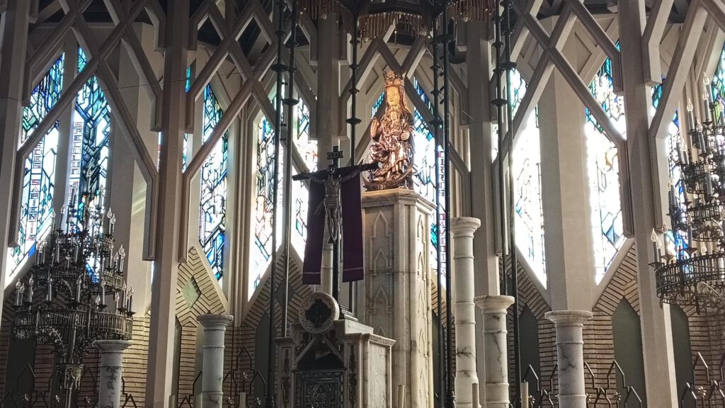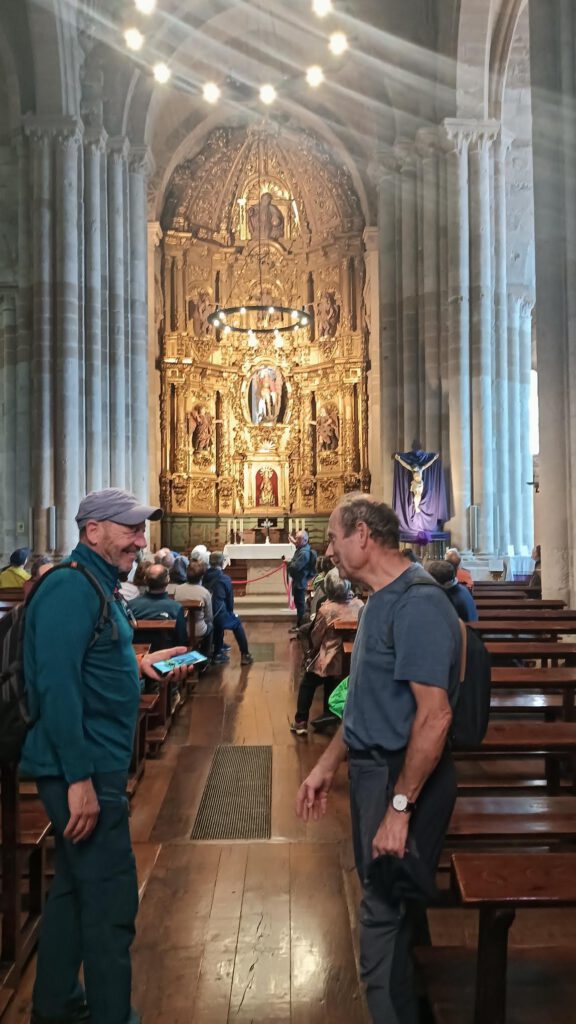 La monumental iglesia de San Miguel se conoce desde 1145, es de estilo románico tardío, pero como es tan grandiosa tiene partes góticas, como lo testimonian ventanales con arco apuntado, y bóvedas de crucería, y también parte de la nave central renacentista, como marca la bóveda estrellada que posee. Su cabecera con tres ábsides semicirculares con bóveda de horno, y sus pilares cruciformes con columnas adosadas, le dan un aspecto catedralicio. El retablo principal, barroco y elegante tiene en el centro un San Miguel renacentista, con capa roja y alanceando al demonio.