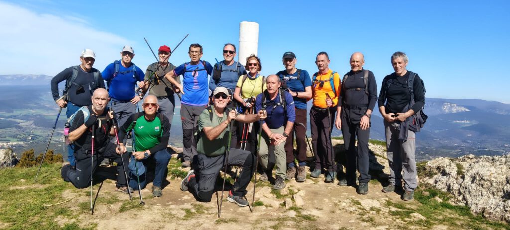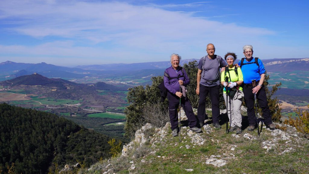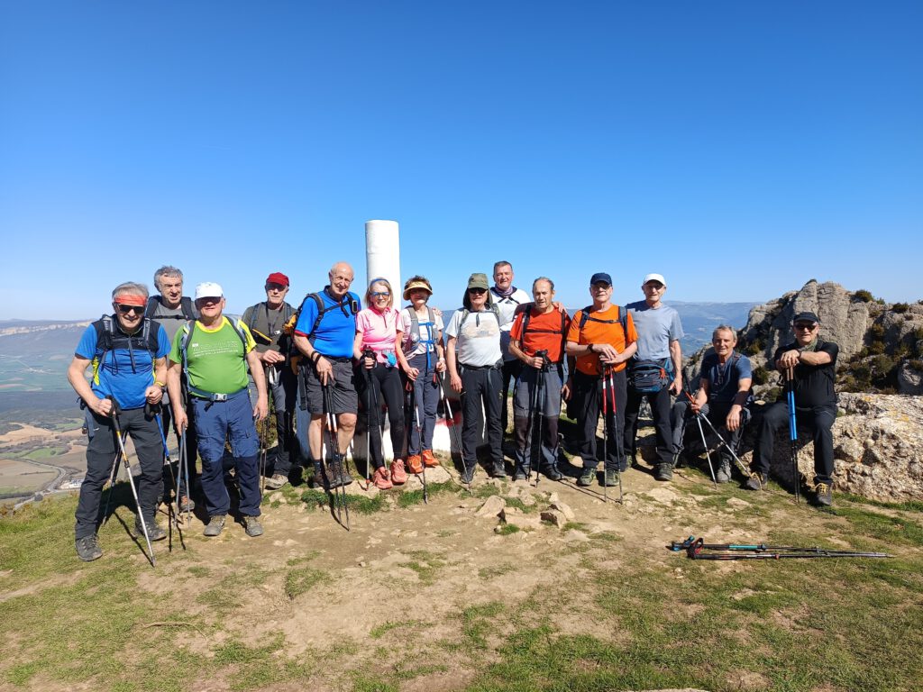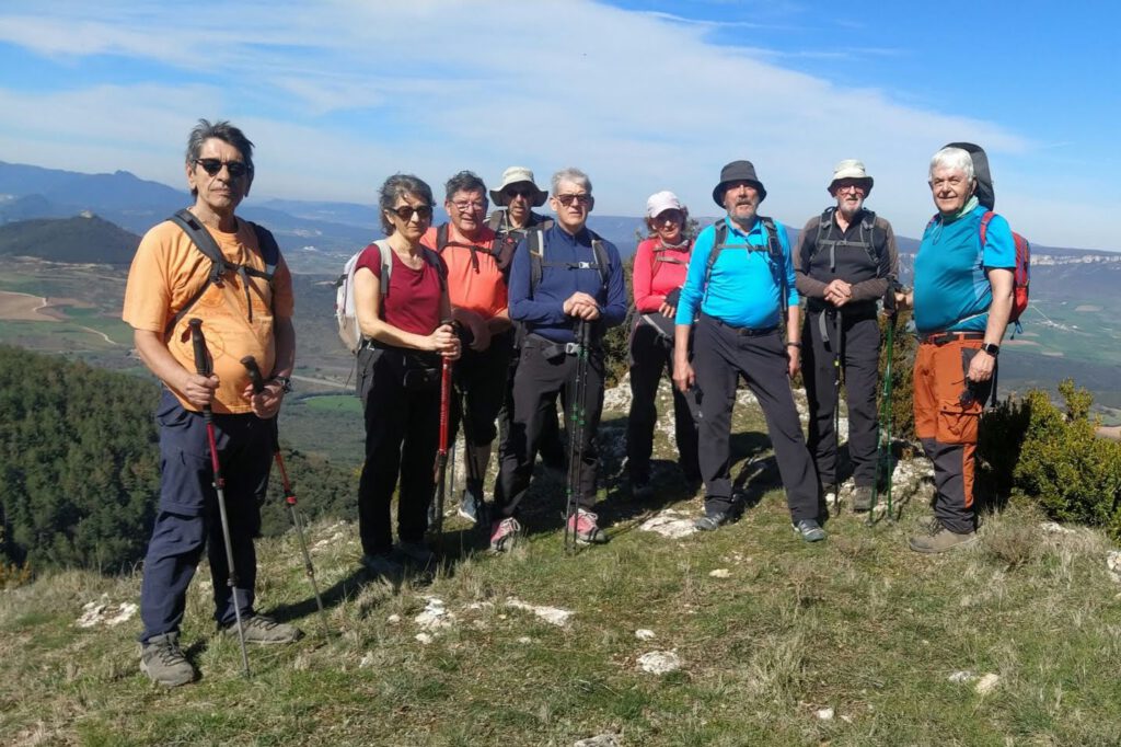 El grupo de ALTA comienza la ruta en Muniain de la Solana, cruzando el pueblo llegaremos hasta un merendero. Giramos a la izquierda para tomar un camino y más adelante un sendero que va atajando campo a través para llegar a una pista. Dejamos la pista para coger una senda a la derecha que termina en el punto geodésico de Montejurra. Iniciaremos la bajada con mucho cuidado, hay mucha piedra suelta, y una pendiente considerable, llegaremos a la cima de Montejurra (1046 m), y algo más abajo a la Ermita San Ciprian.
