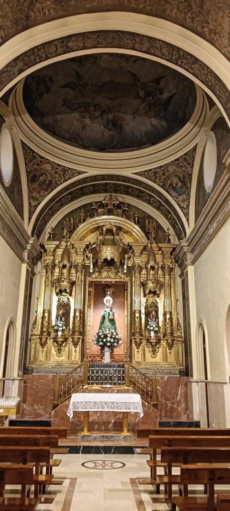 En la parte externa tiene una torre campanario cuya parte inferior es de 1250, como la parteposterior del templo; el resto de la nave es del siglo XVI, y añade en 1842 la capilla de laVirgen de la Peña, patrona de la localidad, que tiene bóveda de media naranja, y pintura enparedes y techo.