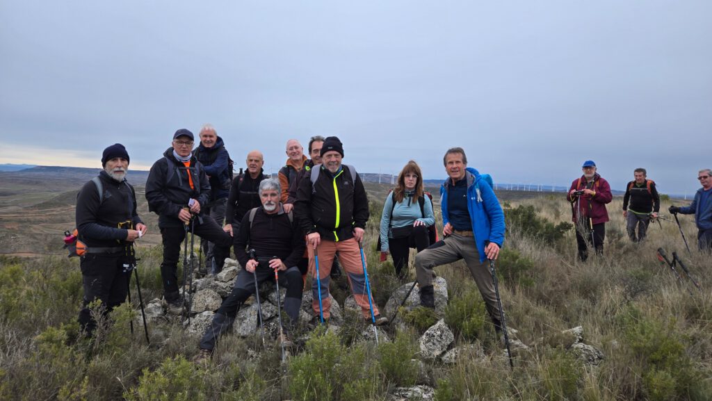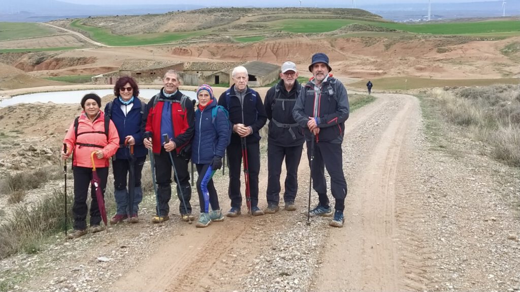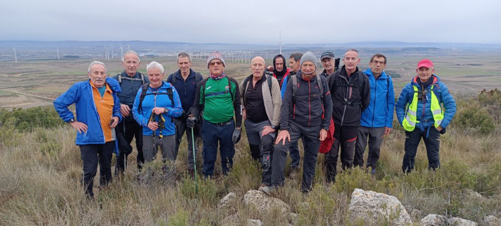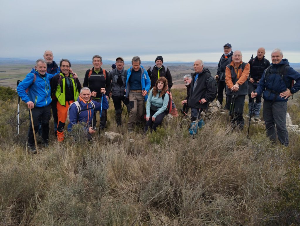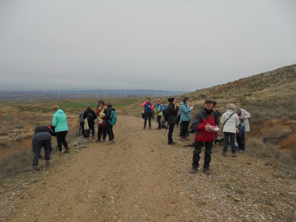 El grupo de BAJA inicia el recorrido en el Km. 8 de la carretera que se dirige a Ejea de los Caballeros, por la pista-camino de lasBardenas Reales. En poco más de 2 km. nos encontraremos en el punto más alto de la excursión.