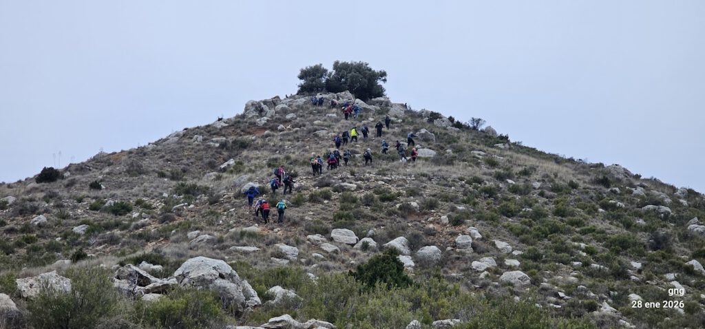 El grupo de Alta inicia su recorrido junto con la Media y la Baja, recorridos aprox. unos tres km se gira a la derecha sin camino claro para ascender a Olivete. Descendemos para seguir por pista, que dejamos para ascender por una zona con maleza, bastante incómoda para andar que nos