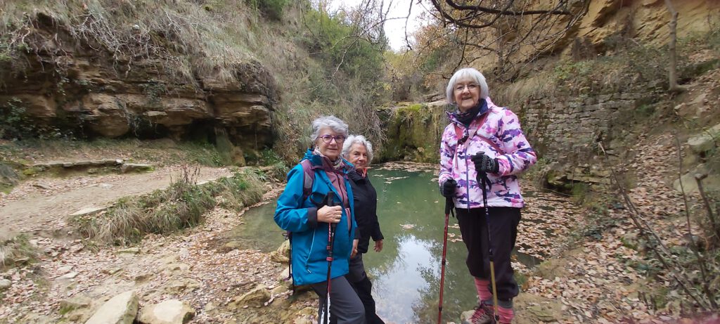 Desde ese punto va por la pista de los eólicos durante 4 Km. Ya en la bajada hacia Aibar pasa por una borda y una nevera muy bien conservada. En el barranco pasa por el “Pozo de las Hiedras” con una bonita cascada y a partir de ese punto continúa por senda, llega a una pista que ya les lleva hasta Aibar.