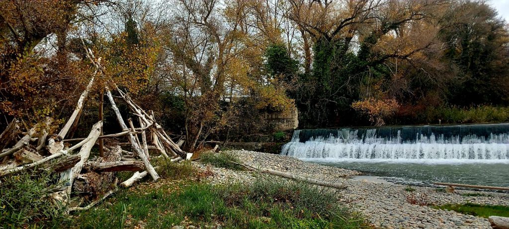 izquierda, para volver en dirección al rio, y tomar camino que nos lleva por su orilla derecha, hasta el conocido puente de hierro, el cual atravesaremos por su paso peatonal, y desembocar en la