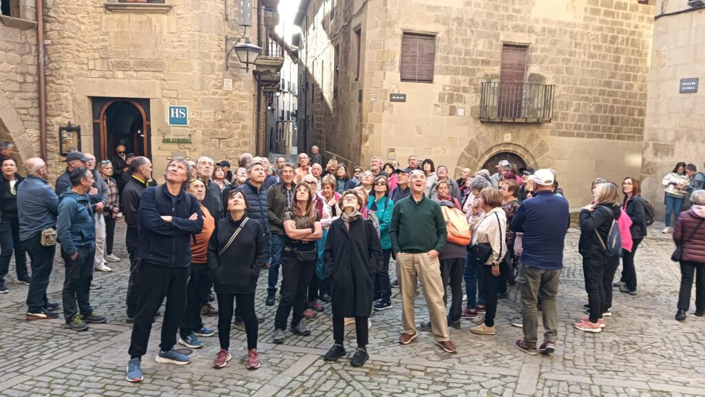 Cruzaremos con atención la carretera y por unas escaleras de piedra, accederemos a la torre Portal de La Reina, la cual pasaremos por debajo, para seguir por la calle Juan II de Aragón, hasta la plaza de La Villa, donde se sitúa el edificio del Ayuntamiento y seguido por la calle Doña Manuela Pérez de de Biel, llegar al pasadizo de la Cripta, que atravesaremos para alcanzar la portalada de la iglesia de San Esteban. Luego accederemos a la torre del Homenaje del Castillo. Fin de nuestra ruta. Ya solo nos queda “perdernos” por las intrincadas calles de esta Villa.