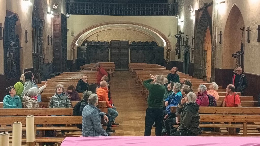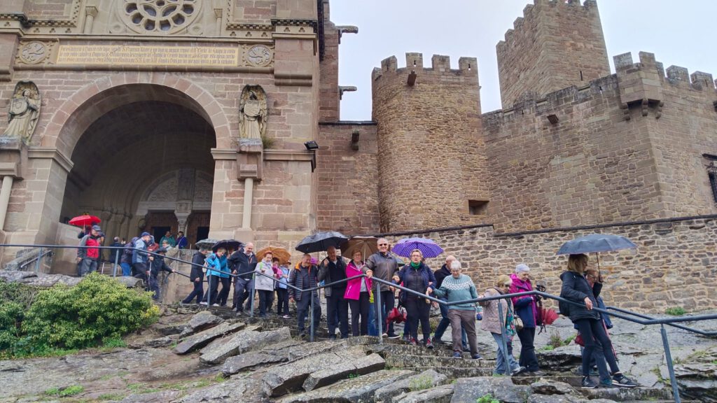 A partir de aquí iremos con cuidado por la izquierda de la carretera, hasta el aparcamiento donde se encuentran los autobuses, y más tarde llegaremos a la explanada del Castillo de Javier, fin del paseo.