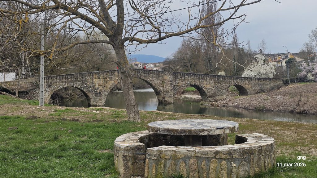 Continuamos por la pista y empezamos a bajar hasta llegar a una balsa que la dejamos a la izquierda, seguimos por un camino muy bonito entre encinas y bojes pero luego en el mismo camino está lleno de piedras, así que precaución, según el tiempo estarán húmedas. Llegamos abajo por un pinar y cogemos una pista que nos lleva bordeando Lumbier acompañados a la derecha por el rio Salazar dejamos de lado el puente medieval de la Sielva hasta llegar a la, carretera y giramos a la derecha cruzamos el puente que nos lleva al aparcamiento donde termina la ruta y nos esperan los autobuses.