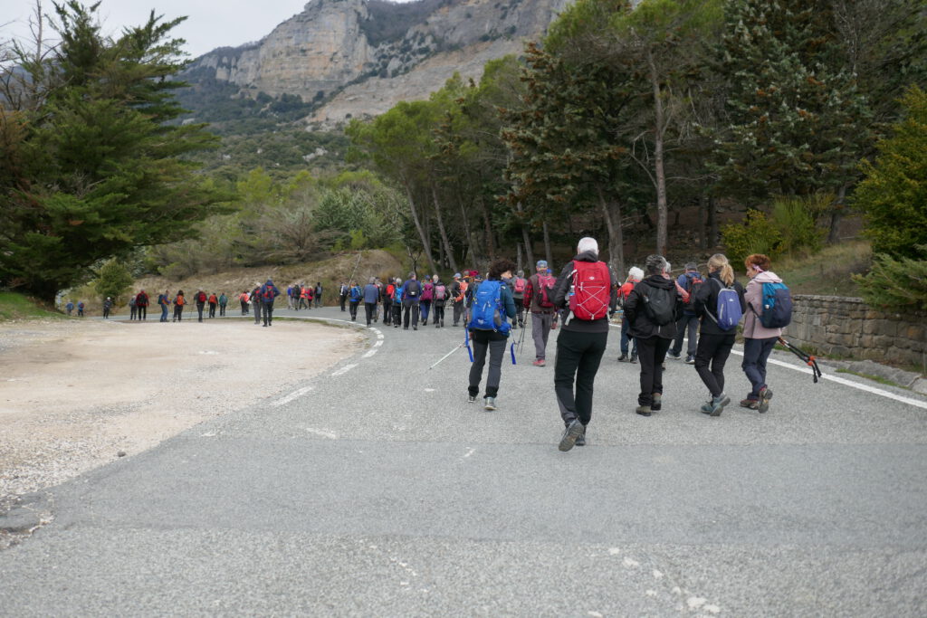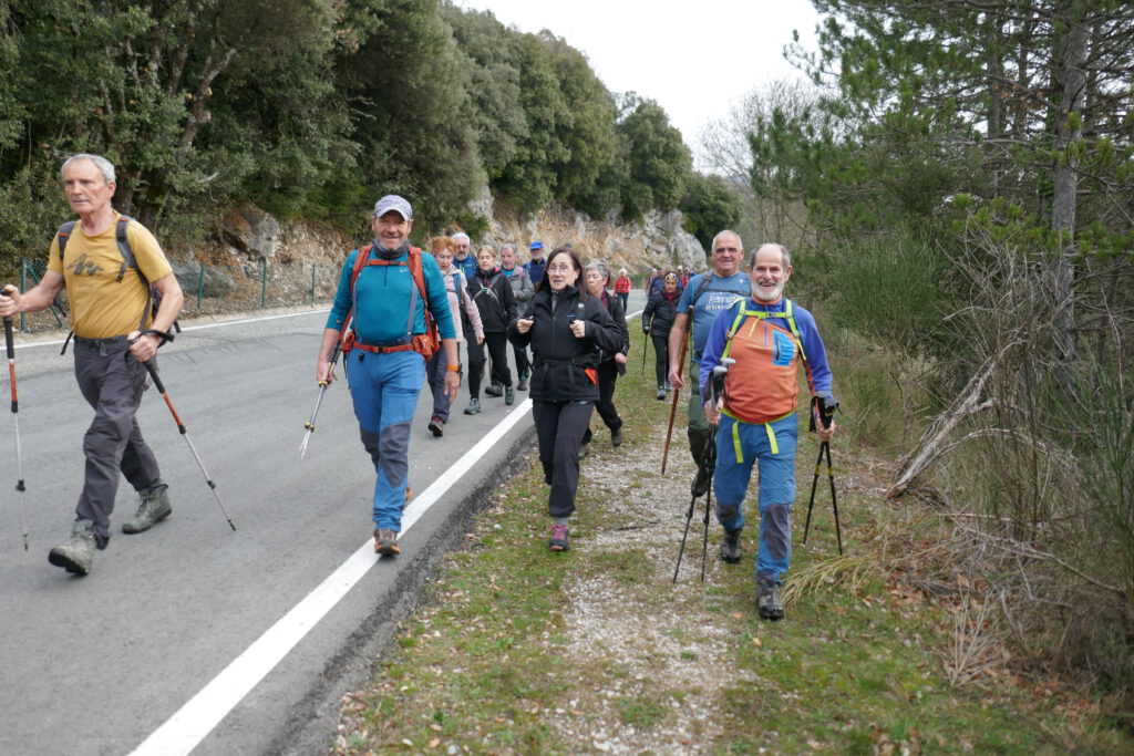 Hoy el grupo de MEDIA, salimos del parking del monasterio de Leire cogemos carretera abajo unos 500 metros hasta llegar a una pista embreada a la derecha vamos subiendo y llegamos a una barrera seguimos y dejamos a nuestra derecha la fuente de Bartolo. Seguimos entre encinas y un poco más adelante a la izquierda nos encontramos con un mirador que merece la pena asomarse por sus bonitas vistas del pantano de Yesa y alrededores, un poco más adelante hay otro más pequeño. Seguimos y nos encontramos con un desvío a la derecha pasando por un paso de animales comenzamos a subir por una pista hasta llegar a un collado que se agradece por el sitio, también podemos aprovechar para almorzar.