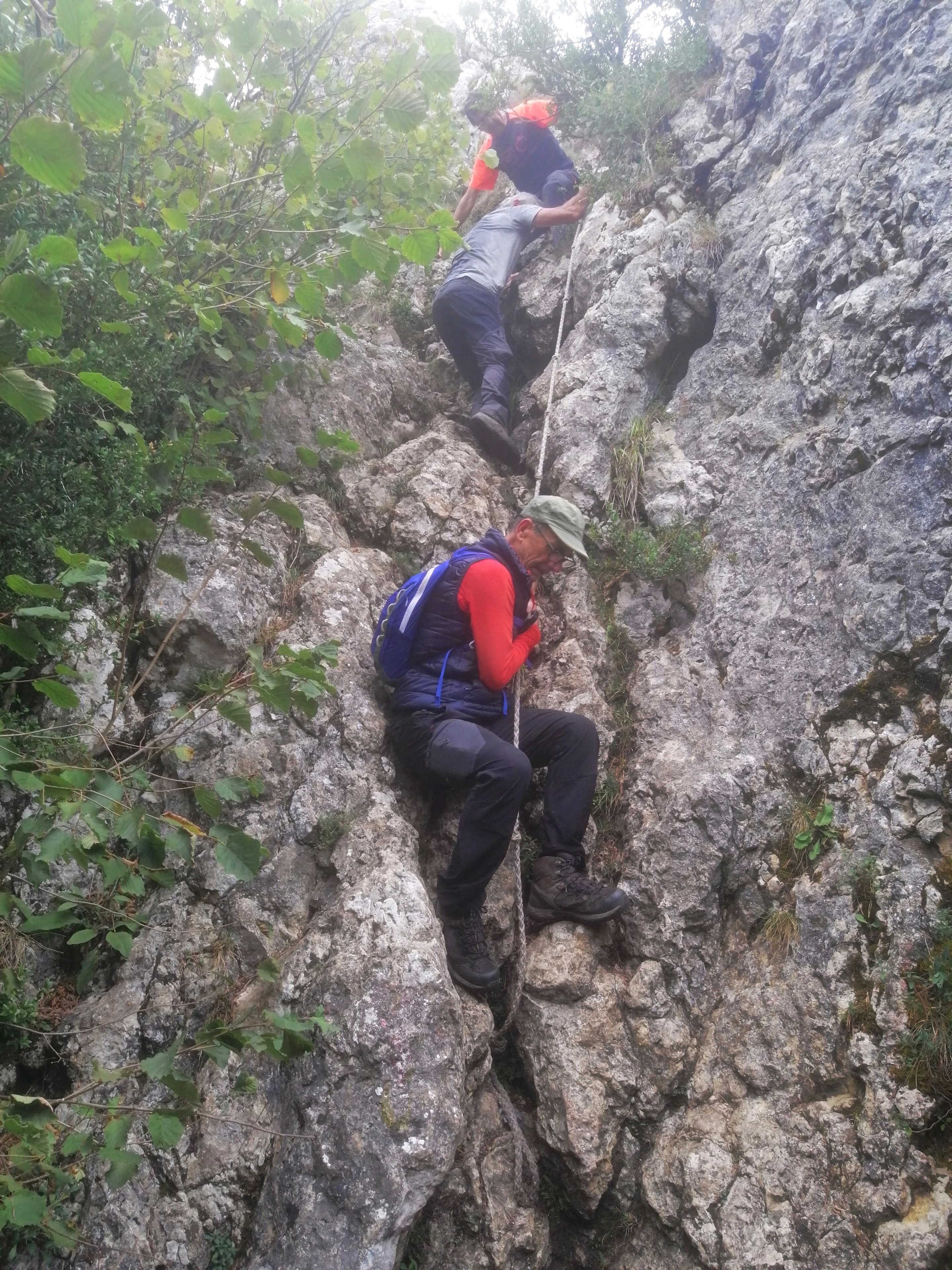 Aquí nos encontramos al pie de la peña con una hermosa cuerda para quien se atreva a trepar, no es muy complicado pero, si quieres subir, tienes que trepar, no hay otra forma.